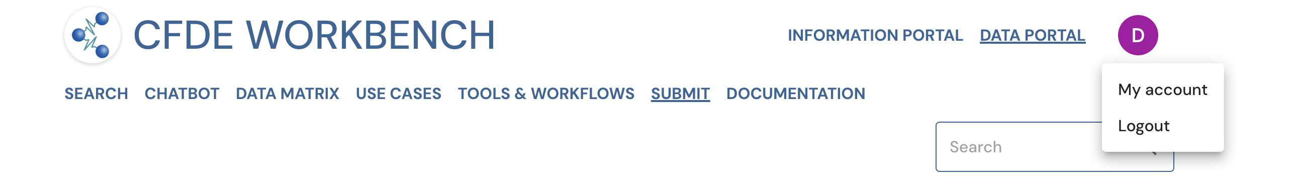 Figure 2: A screenshot of Data Portal showing navigation to My Account page.